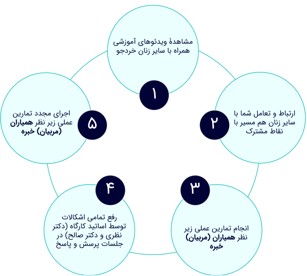 +100 ساعت آموزش و ۶ ماه همراهی گامبهگام در کنار سایر زنان برای رهایی از رنجها و آسیبهای روان و بازیابی آرامش درونی.